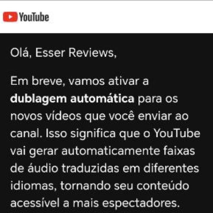 A dublagem automática chegou ao YouTube no Brasil para vários youtubers no dia 20 de novembro. A plataforma de streaming de vídeos do Google enviou e-mails para os criadores de conteúdo dizendo que a nova funcionalidade passará a funcionar de forma automática nas próximas semanas e não é necessário fazer nada.