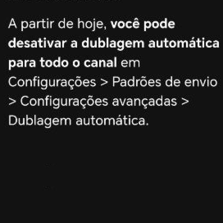 De acordo com o e-mail enviado pelo YouTube, embora a dublagem automática seja ativada por padrão nos canais que receberam a mensagem, é possível desativar a função indo em “Configurações > Padrões de Envio > Configurações Avançadas > Dublagem automática.