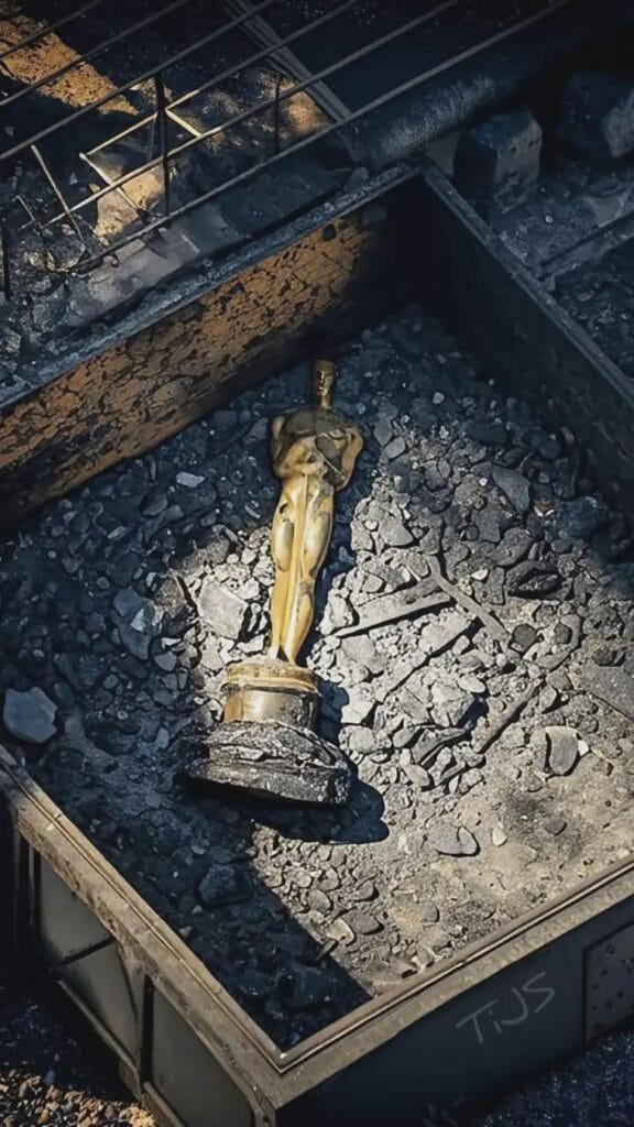 No último domingo (12), a atriz Isabella Rosselini publicou a foto de um Oscar no meio de escombros de incêndio, indicando que a foto teria sido tirada em Las Vegas.